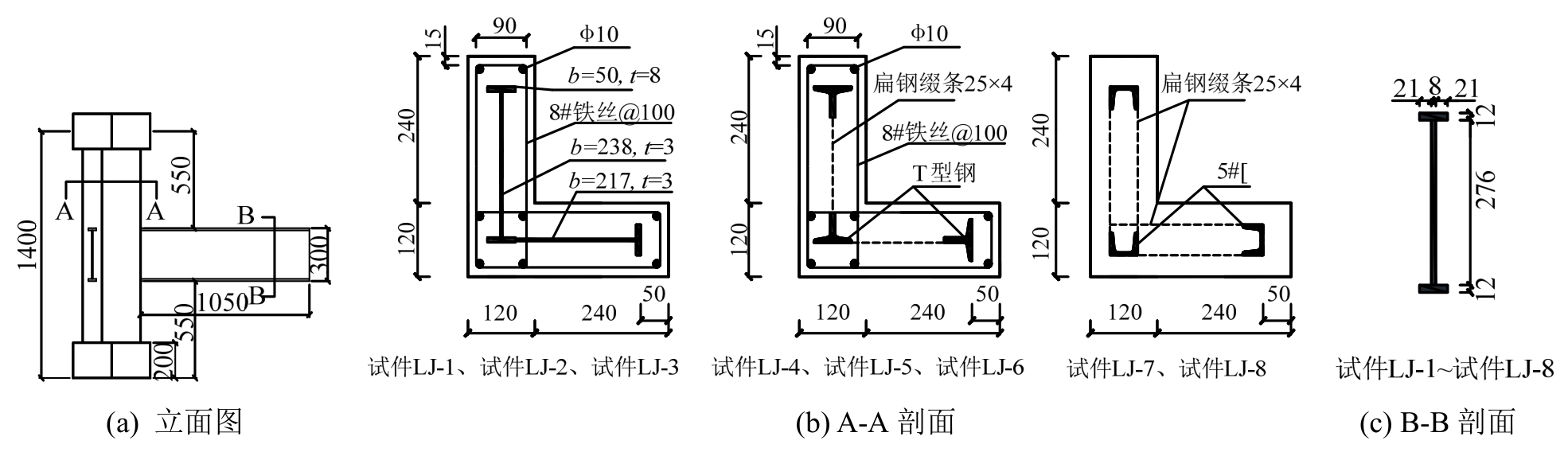 图11 试件截面尺寸及配钢形式