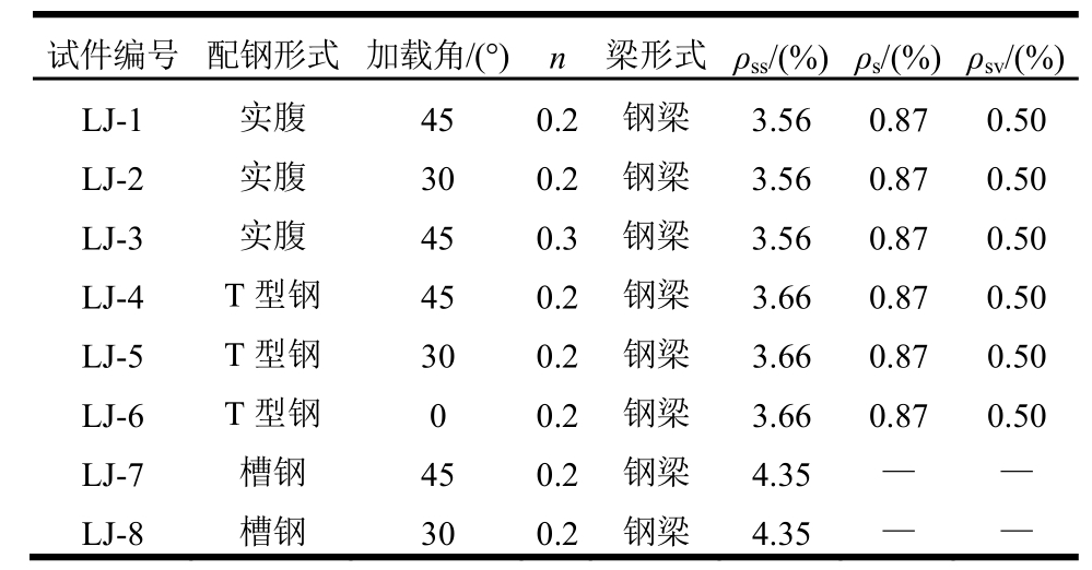 注:ρss为纵向型钢含钢率;ρsw为腹杆配钢率;ρs为纵筋配筋率;ρsv为体积配箍率。
