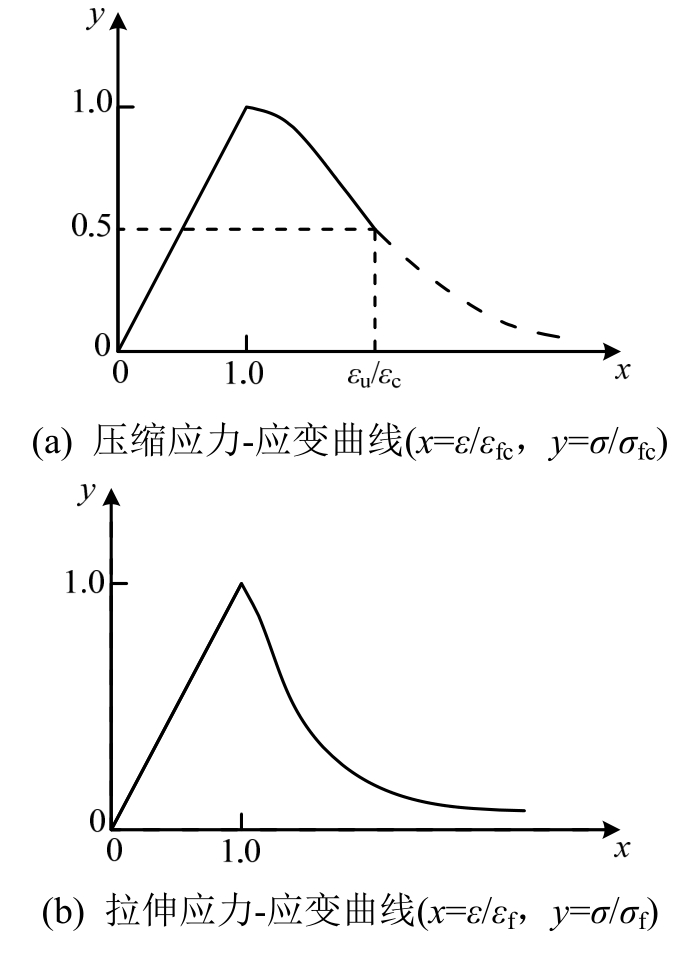 单轴受拉应力-应变曲线方程: