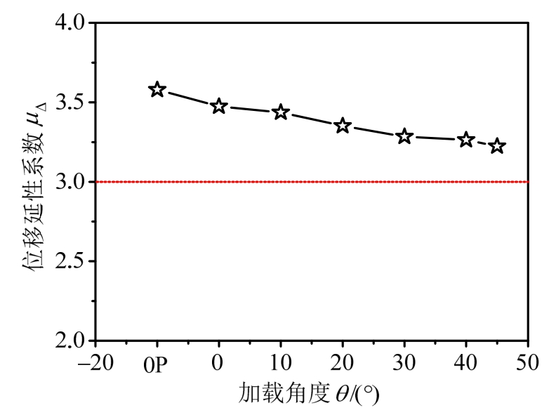 图24 加载角度与位移延性的关系