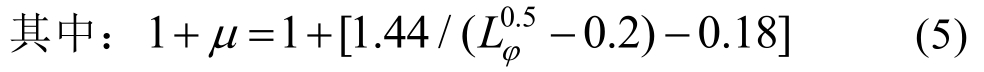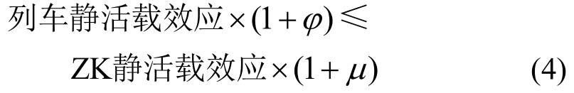 式(4)中的1+φ为对应列车活载相应的容许动力系数;式(5)为对应ZK活载相应的动力系数,Lφ/m表示加载长度,简支梁取梁的跨度。