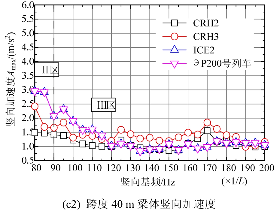 式(2)中:v/(km/h)表示列车或车辆的最高速度:n/Hz表示构件的自振频率:Lb/m表示构件的跨度。