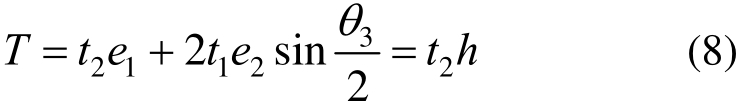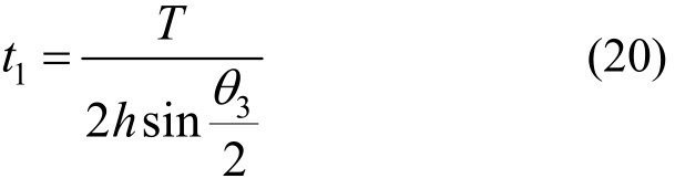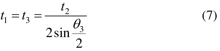 在扭矩T作用下,对应于桁架截面三个侧面上的剪力按均匀分布考虑,腹杆条轴力表示为t1、t2和t3,由平衡条件可得: