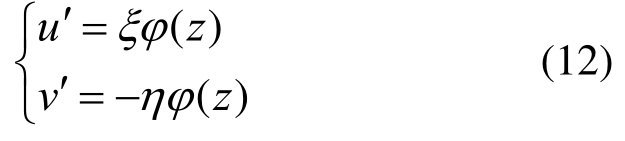 为求右侧面的剪切变形,仍以扭转中心C作为零点,建立如图5所示的直角坐标系ξ-η-z,坐标轴ξ与右侧面垂直,η与右侧面平行,z轴与坐标系x-y-z中一致。桁架截面扭转角为φ(z)时,截面任一点沿ξ轴和η轴方向的位移分别为: