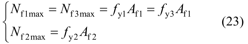 左、右侧面和上平面斜腹杆达到屈服强度时能承受的最大轴力Nf1max、Nf2max和Nf3max分别为: