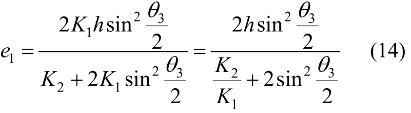 由式(14)可知:当h和θ3一定时,扭心位置主要与K2/K1有关,K2/K1无限小时,e1≈h,扭心位置接近下弦形心,K2/K1无限大时,e1≈0,扭心位置沿y轴接近上弦形心,即K2/K1越小扭心位置距上平面越远。