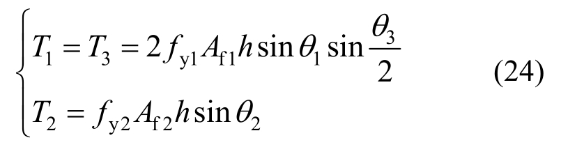式中:fy1、fy2和fy3分别为三个面斜腹杆的屈服强度。