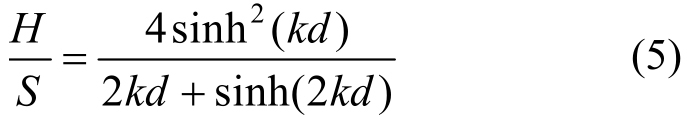 式中:k为波数,即k=2π/L,L为波长;d为水深。推波板做来回往复直线运动时的速度表达式为: