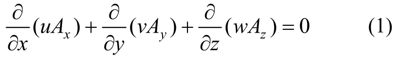 数值建模采用连续性方程和不可压缩黏性流体运动的Navier-Stokes方程作为流体运动的控制方程。连续性方程为: