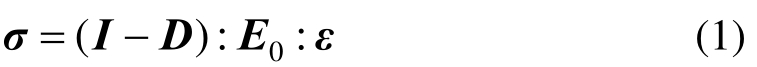 其中:I为四阶单位张量;D与Di分别为损伤变量与不可恢复损伤变量张量;ε与εi分别为总应变与不可恢复应变张量;E0为初始弹性模量张量。