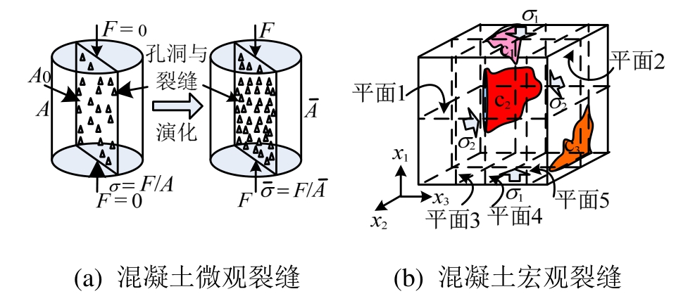混凝土材料的复杂性、混凝土结构施工过程中人为或者环境等因素,导致结构初始状态具有随机性;而且疲劳荷载的长期作用,引起桥梁、海岸线混凝土工程结构等的材料和结构性能具有时变性和随机性。因此,进行这类结构经时性能理论研究的突破口,是如何有效地揭示其性能的随机性与时变性,即主要揭示混凝土结构疲劳随机损伤机理与性能随机演化规律。而开展混凝土随机损伤本构关系研究是揭示混凝土结构性能随机性与时变性的基础。