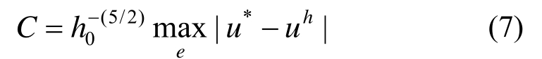 即在单个单元上,线性元解uh一般按步长h的5/2阶收敛,此为分数阶次的来源。实际求解中,其精确解u用EEP超收敛解u*代换,式(5)可写成更为实用的。