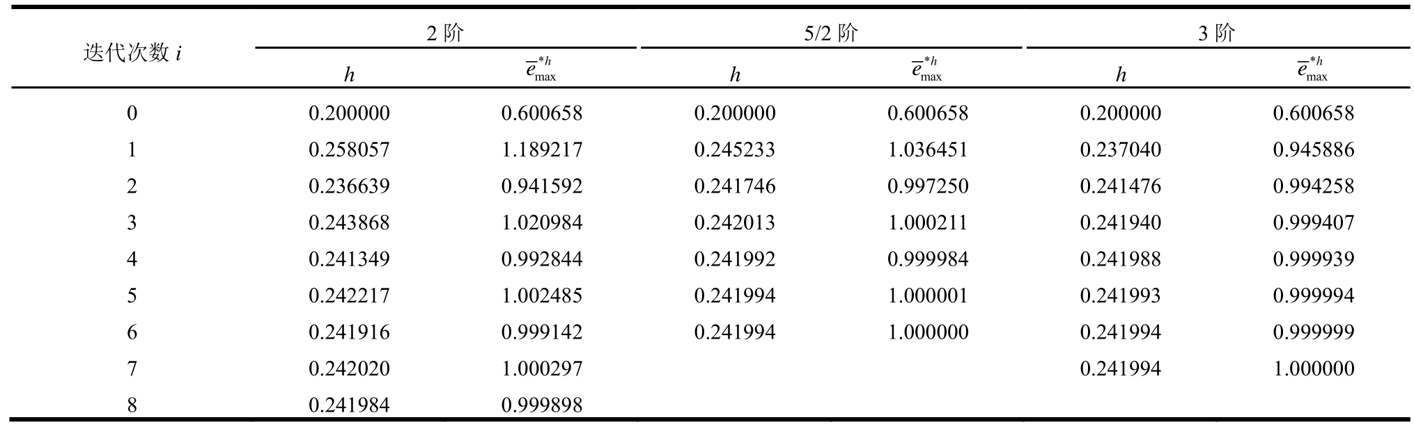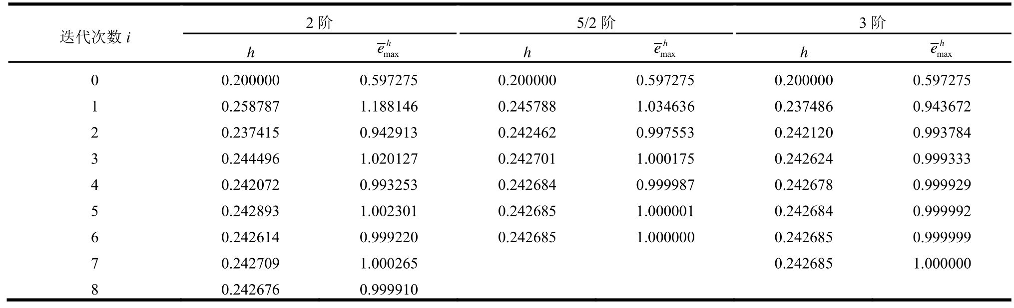 表1(b) 不同阶数的收敛情况(h0=0.2,EEP解)
