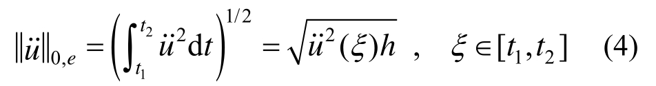 又注意到式(3)右端的积分定义于局部单元区间[t1,t2]上,所以其值与单元长度 h=t2- t1有关,根据积分中值定理可得: