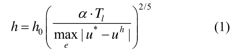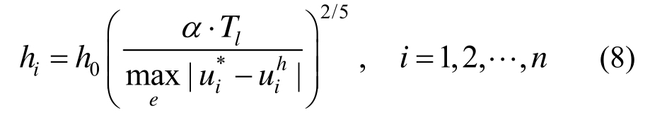 文[8]的自适应步长求解的目标为,在精确解未知的情况下,事先给定误差限Tl,寻求一个优化的步长h,使得在该单元e上有限元解答uh按最大模度量满足给定的误差限 Tl,即满足