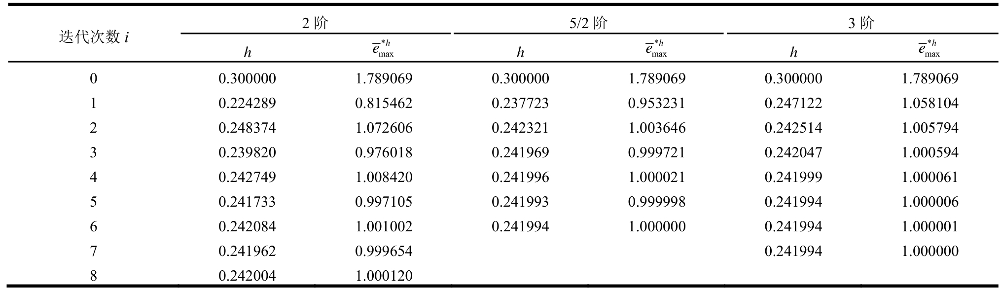 表2(b) 不同阶数的收敛情况(h0=0.3,EEP解)