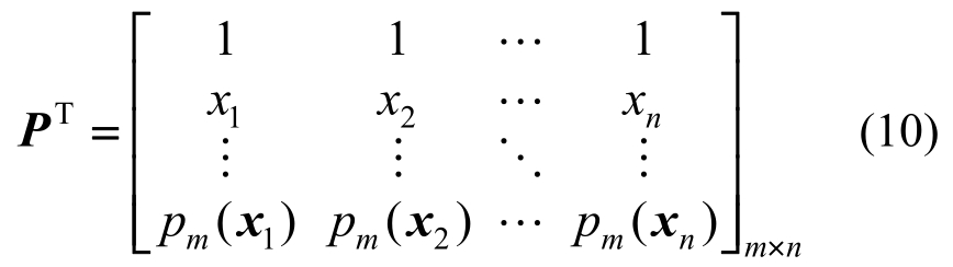 这里选用线性基,节点处基函数值所形成的矩阵P表示为: