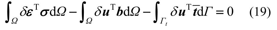 考虑物理域Ω,其边界Γ由位移边界uΓ和面力边界Γt组成,由虚功原理可得二维线弹性力学控制方程的等效弱形式为: