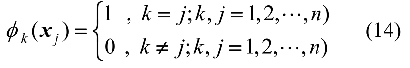 式(5)形函数最重要的一条性质就是满足Kronecker delta函数性质,即: