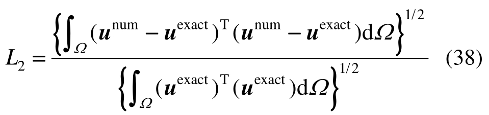 为了进行误差和收敛性分析,这里我们定义位移相对误差范数L2: