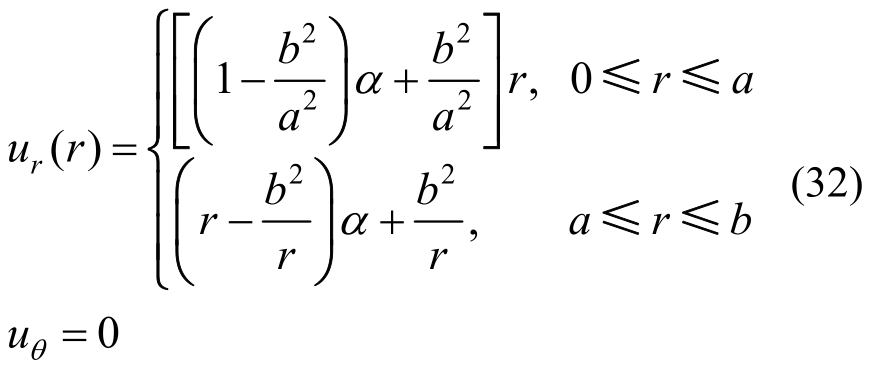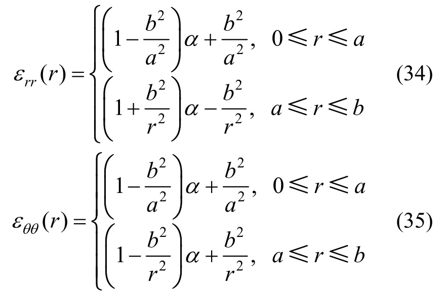 径向(εrr) 和环向(εθθ)应变为: