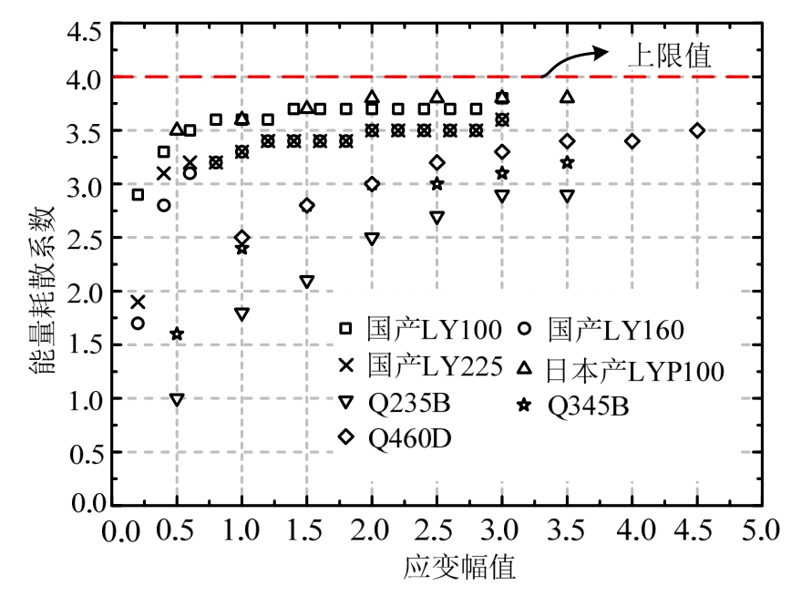 Table 4 Comparison of energy dissipation coefficients for different steels