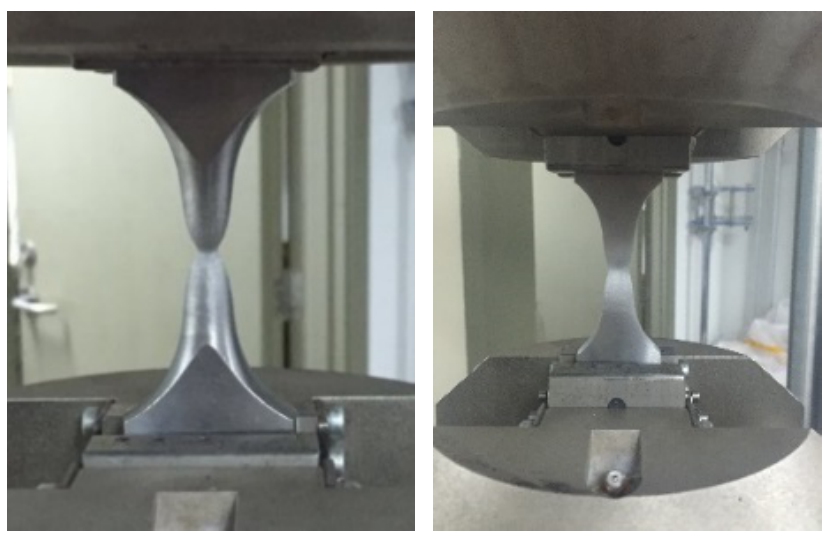 单调拉伸试验过程中,试件均出现明显颈缩现象,断裂时无明显声响,图4以L-1-1与H-1-1试件为例记录了试件破坏时的典型现象,可看出试件破坏前塑性变形明显,截面收缩程度较高,钢材表面出现较为明显的交错状锈迹剥落线,表现出很好的延性。