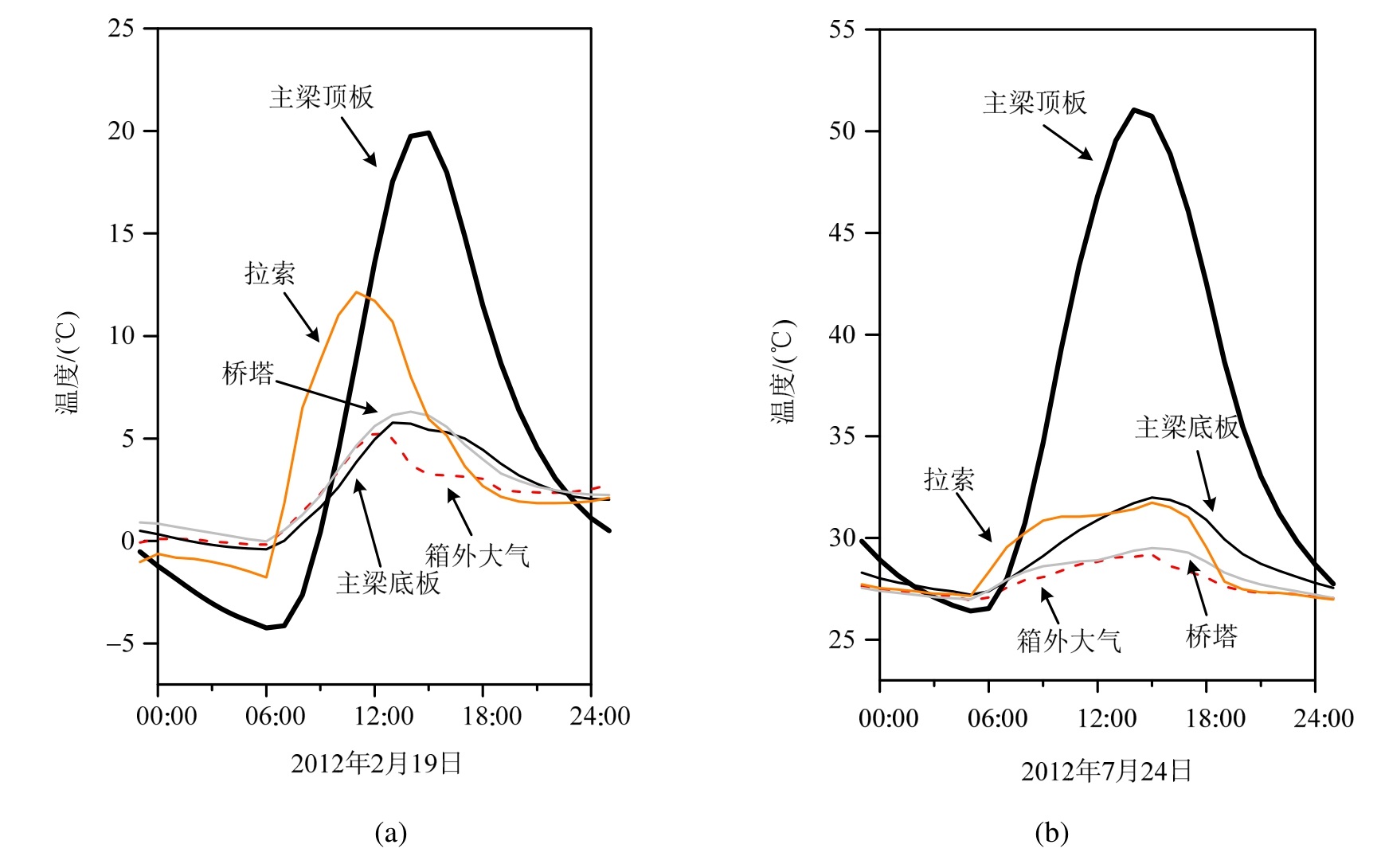 图1 各构件温度对比