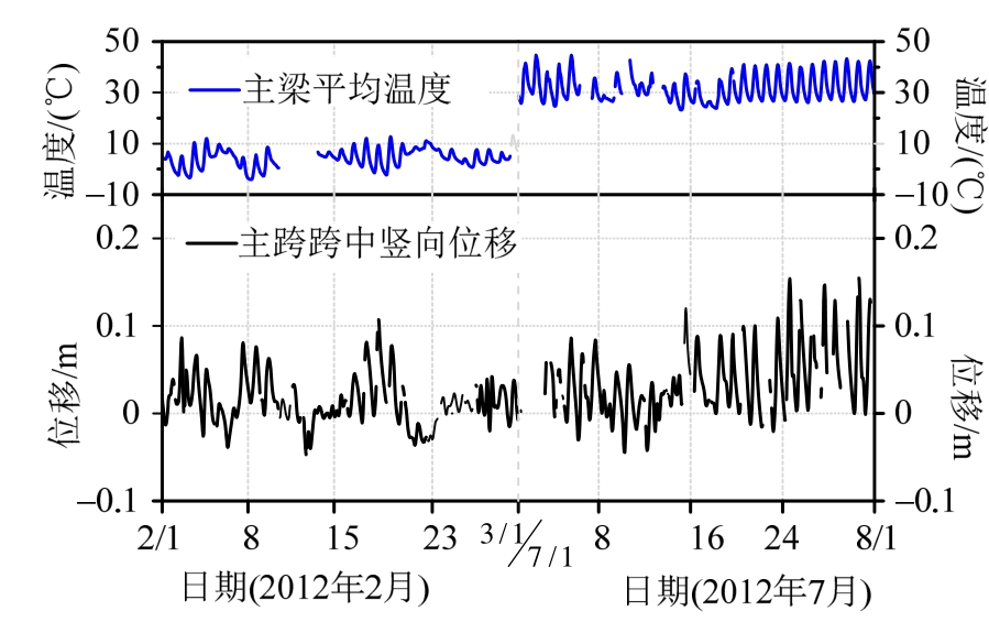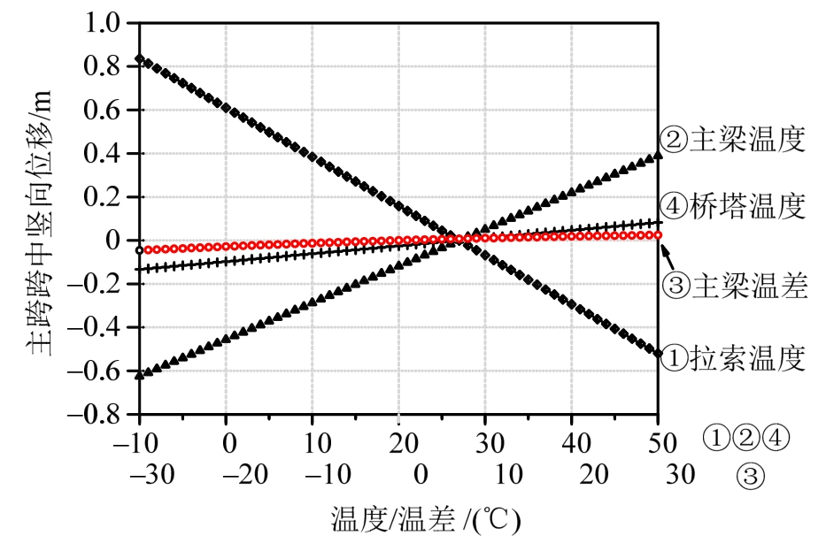 Key words:cable-stayed bridge; temperature effect; mechanism; mid-span vertical displacement; structural health monitoring