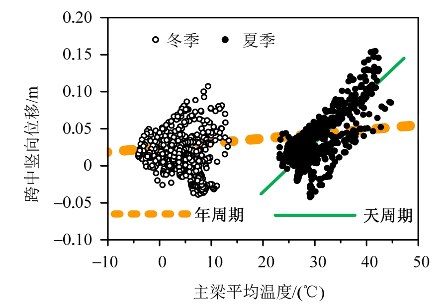 关键词:斜拉桥;温度效应;机理;跨中竖向位移;结构健康监测