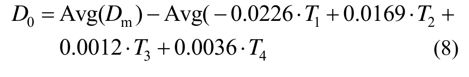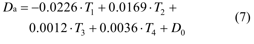 式中:T1~T4分别对应拉索温度、主梁平均温度、主梁顶底板温差、桥塔平均温度,D0为与结构初始状态有关的常数。为了与图5中的散点图具有相同的基准线,作者同时采用2月和7月的数据按下式估计了D0: