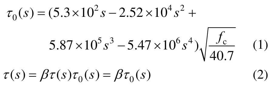 钢筋的粘结滑移采用Houde公式[20](如式(1)),利用粘结滑移降低系数β[21]考虑锈蚀钢筋的粘结性退化(如式(2))。采用弹簧单元 Spring2模拟两者的粘结滑移特性,结合实际特点,只考虑纵向的粘结滑移,其余两个方向设置较大刚度以限制其位移。
