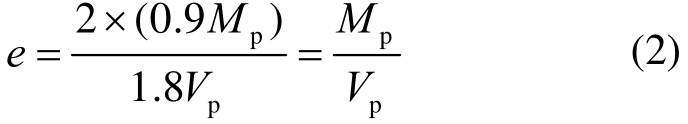 基于图1中的已有试验研究结果,可得该类型消能梁段的最大弯矩值为 0.90 Mp,最小剪力值为1.80 Vp,并代入式(1)中可得: