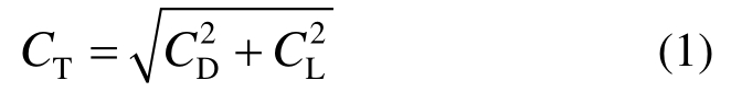 式中CT、CD和CL分别为合力、阻力和升力系数。