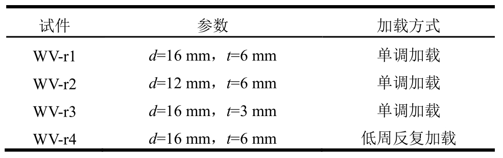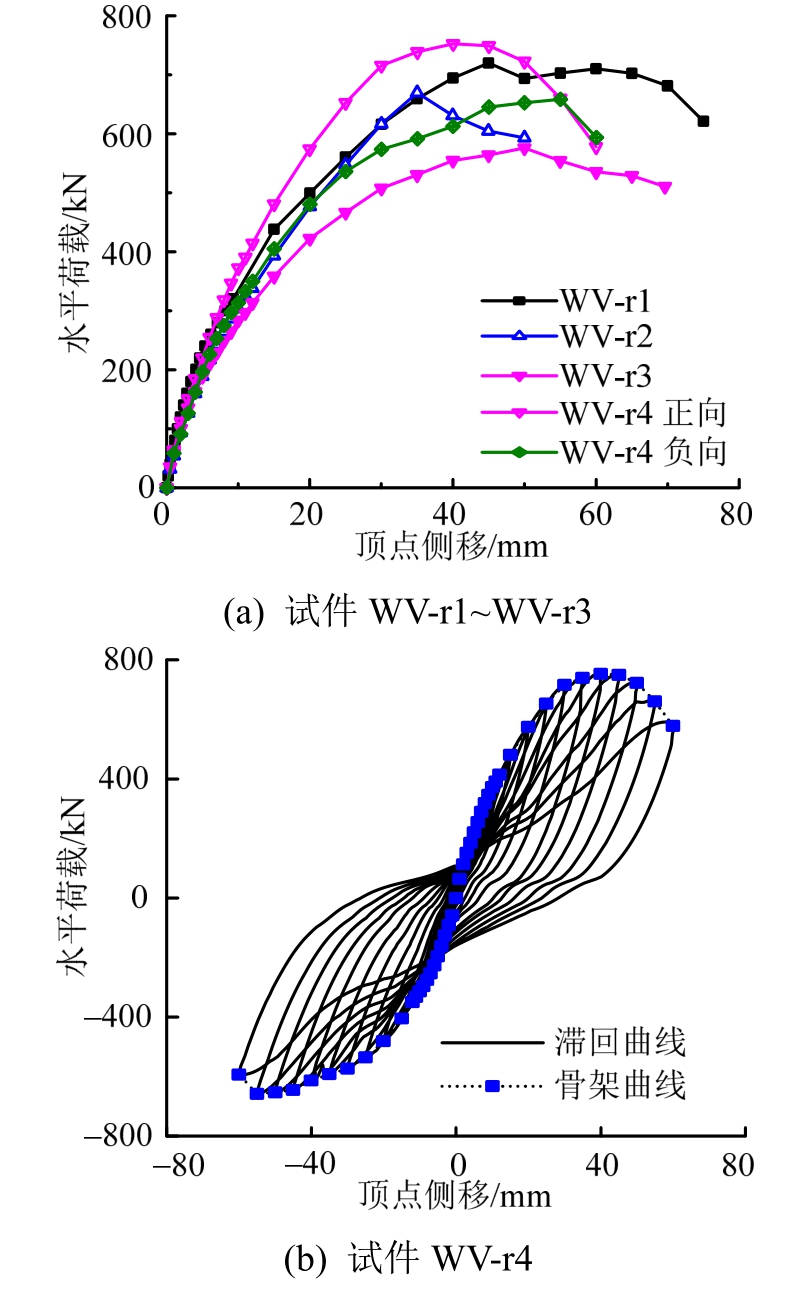 注:H为顶部加载点至墙板底部的距离,对WV-r1~WV-r4取H=2331mm。