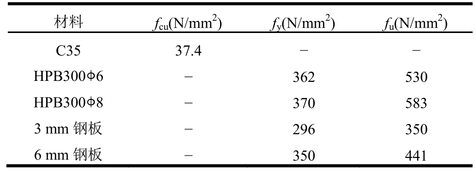 注:fcu为混凝土立方体(150 mm×150 mm×150 mm)抗压强度平均值;fy、fu分别为钢筋/钢板的屈服强度、极限强度。