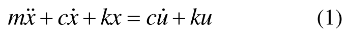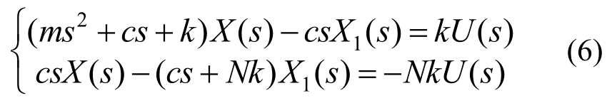 从以上两个代数方程中消去X1(s),得到减震体质心位移x对支座位移u的传递函数: