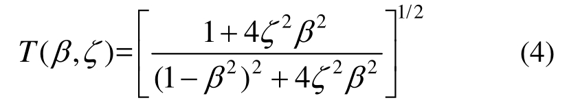 在式(7)中令s=jω,得到x对u的频率特性。再利用式(3)定义的频率比β,得到实用减震体系绝对传递率的解析表达式: