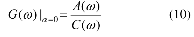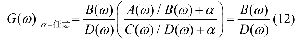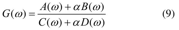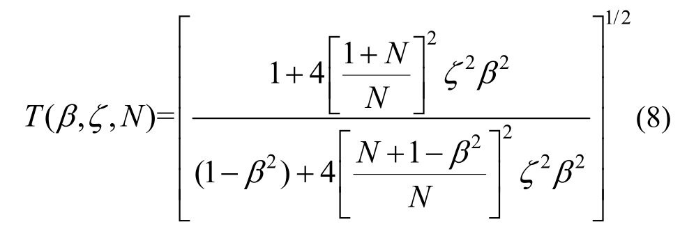 式中:G(ω)为变化过的传递函数,即式(4)中T2(β,ζ) ,式(8)中 T2(β,ζ,N );α 为与阻尼比相关的系数(即阻尼比的平方 ζ2); A ( ω ) ,B (ω ) ,C (ω),D(ω)为激励频率ω的函数。现对α作以下讨论: