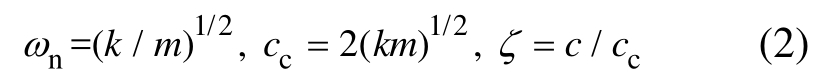 在图1(a)所示的单自由度减震体系中,对系统的固有频率nω、临界阻尼系数cc和阻尼比ζ作如下定义,即: