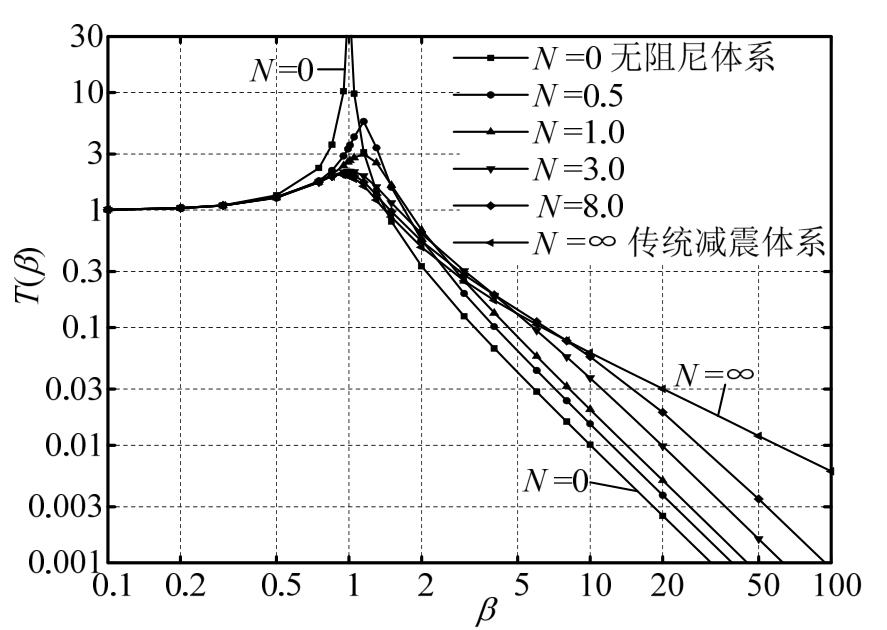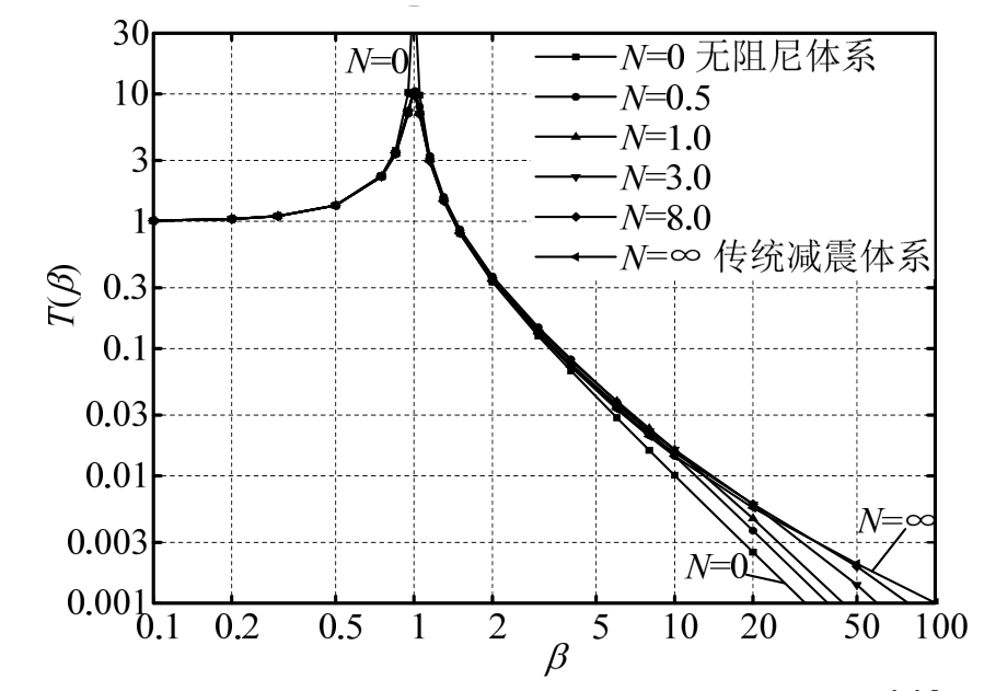 故本文提出的实用减震体系实质上是更为一般的减震体系,而传统减震体系则是当支撑刚度系数N趋于无穷大时的特殊减震体系。