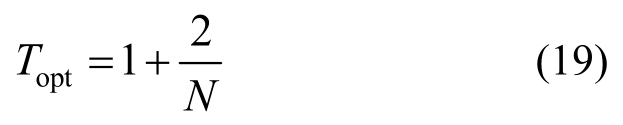 将式(16)中确定的βA和式(18)中确定的ζopt一同代入式(8),就能得到实用减震体系频响曲线最低峰值Topt与支撑刚度系数N的关系式: