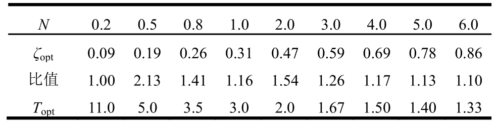 表1 支撑刚度系数N及其最优阻尼比ζopt