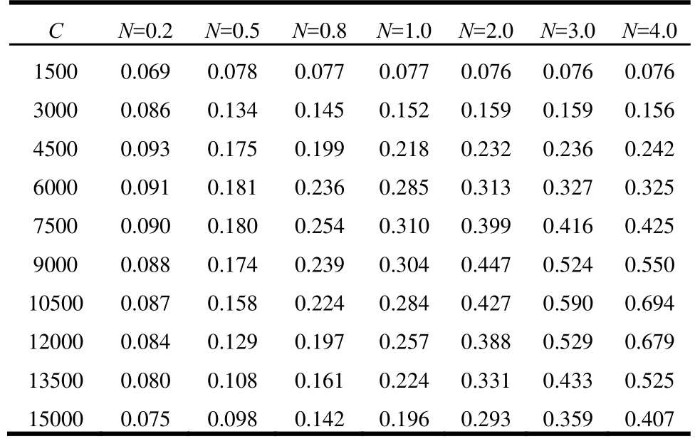 表4 不同N及C下结构的附加阻尼比ζ/(%) (时程平均)