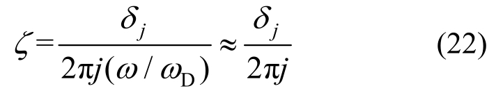 式中:ζ为体系阻尼比;δj为对数衰减率δj=ln(si/si+j),si和si+j分别为单自由度体系第i周和第i+j周振幅;j为两振幅间相隔周期数;ω和ωD分别为无阻尼体系和有阻尼体系的自振频率。