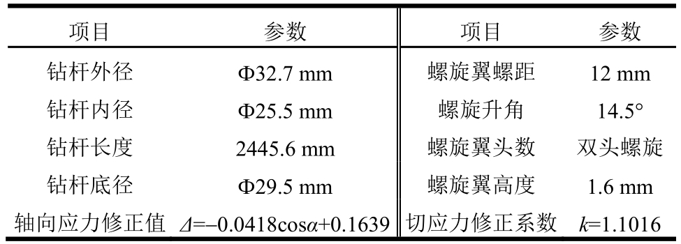 所用螺纹钻杆参数见表1,被钻物为夯实了的土石混合物。
