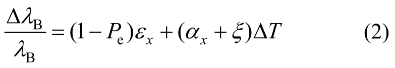 轴向应变(εx)和环境温度(T)均通过折射率和光栅常数来影响FBG的布喇格波长(λB),记其漂移量为ΔλB,二者对波长漂移的总贡献为[16]: