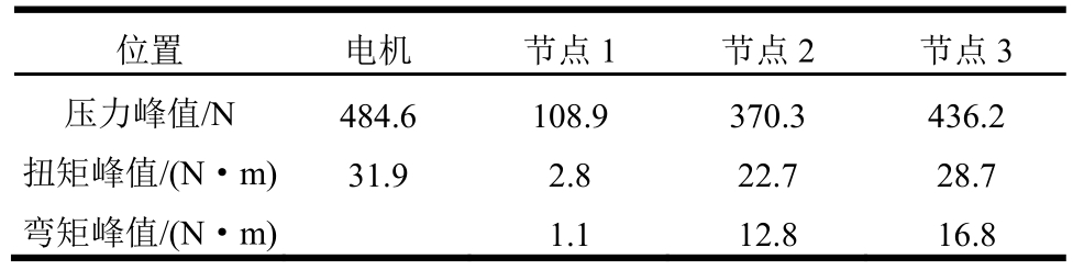 钻进过程中,各节点位置测得复合载荷大小关系为:F电机>F3>F2>F1;T电机>T3>T2>T1(T电机为电机施加的扭矩);(节点 2位置未进入被钻物时)M2>M3>M1;(节点 2 位置进入被钻物后)M3>M2>M1。