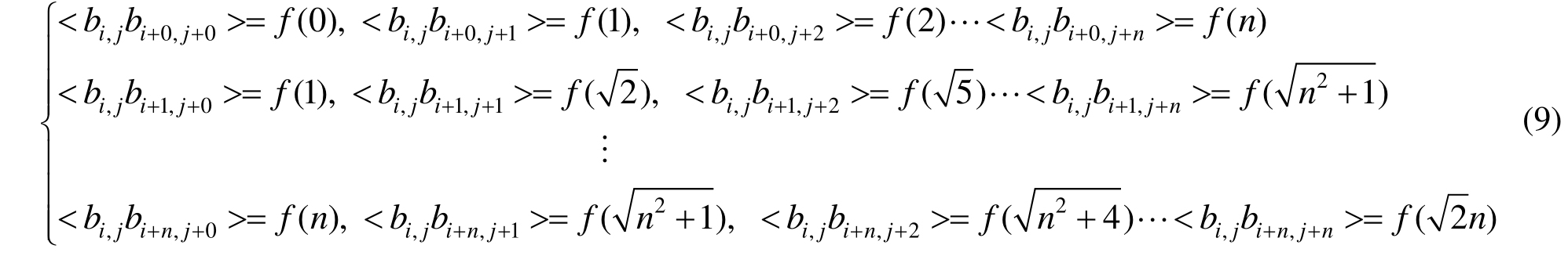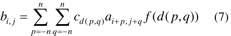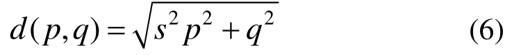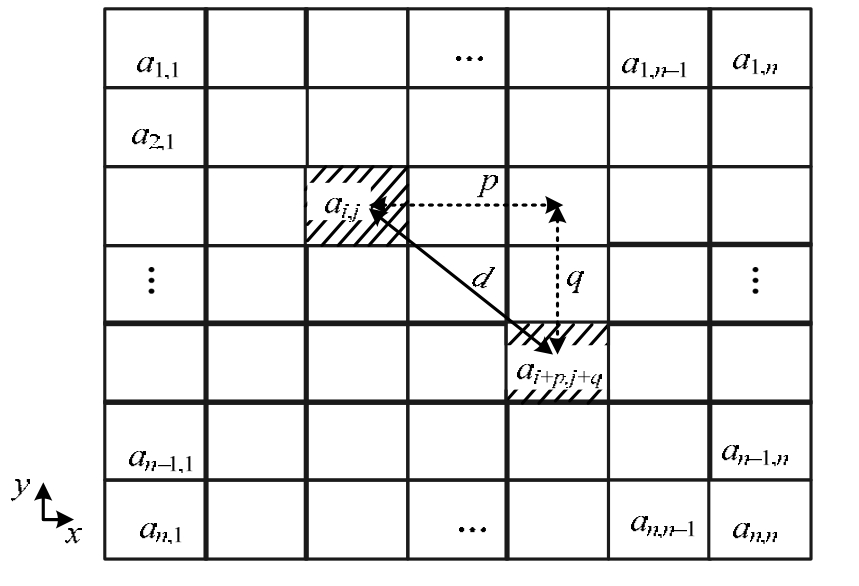 其中,d为ai, j与 a i + p , j + q 之间的距离,见图 1,