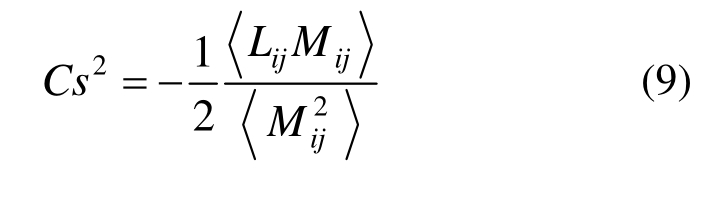 为了解决Smagorinsky常数为定值导致耗散过大的问题,Germano等[18]提出动态Smagorinsky模型计算Cs值,Lilly[19]提出最小二乘法对 Germano的模型进行了简单的修正: